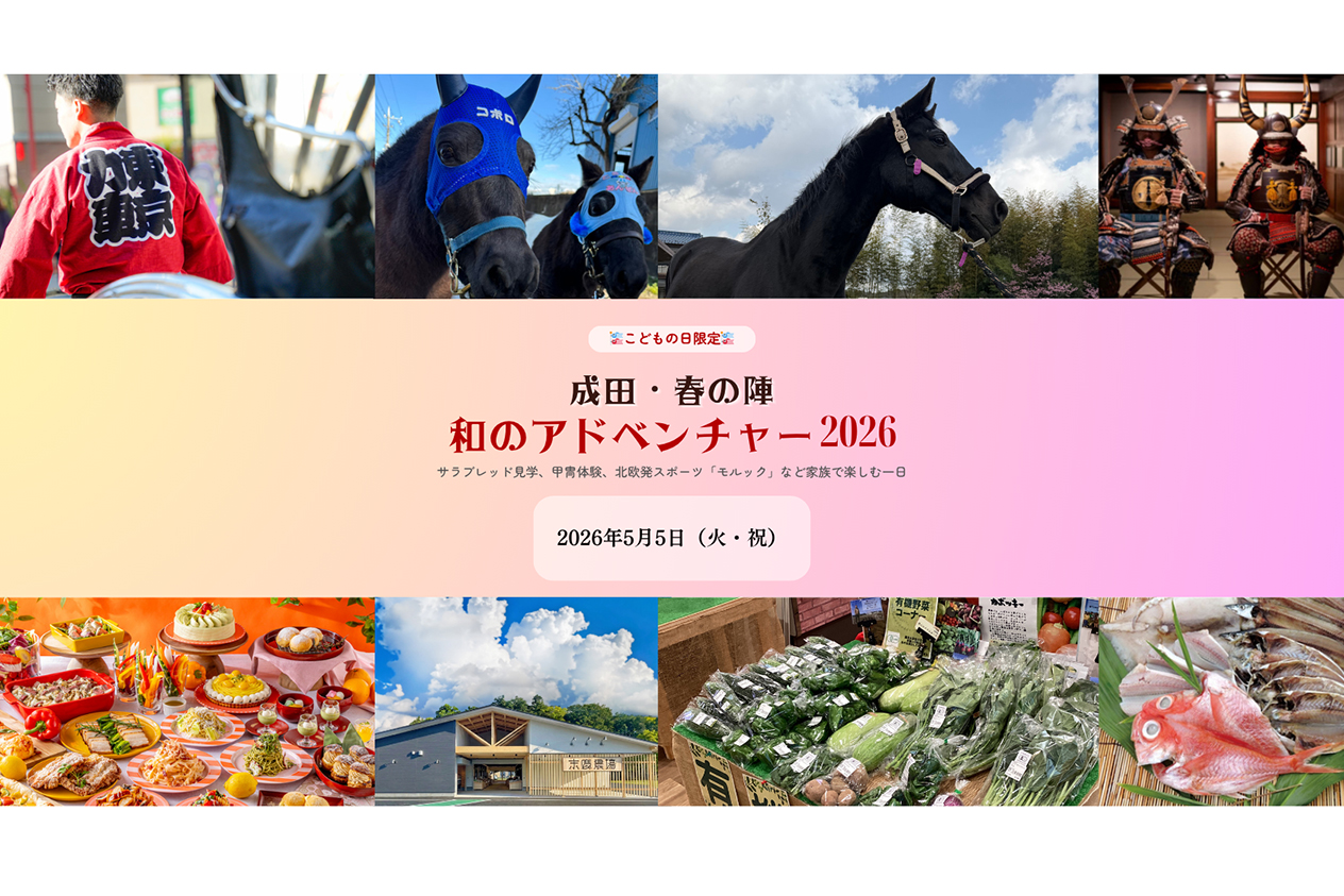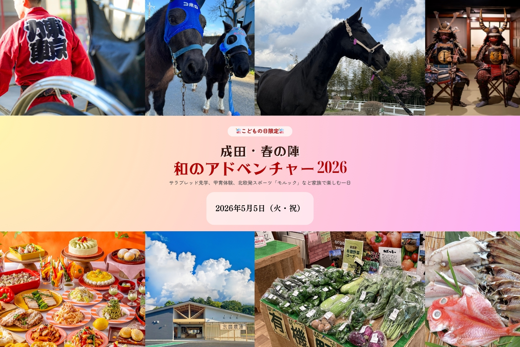 2026年5月5日(火・祝)のこどもの日に、特別イベント「成田・春の陣 和のアドベンチャー2026」を開催いたします。ホテルの広大な敷地を舞台に、馬とのふれあい、日本の伝統文化、地元の食を、親子で一日を通して体験できるプログラムをご用意しました。