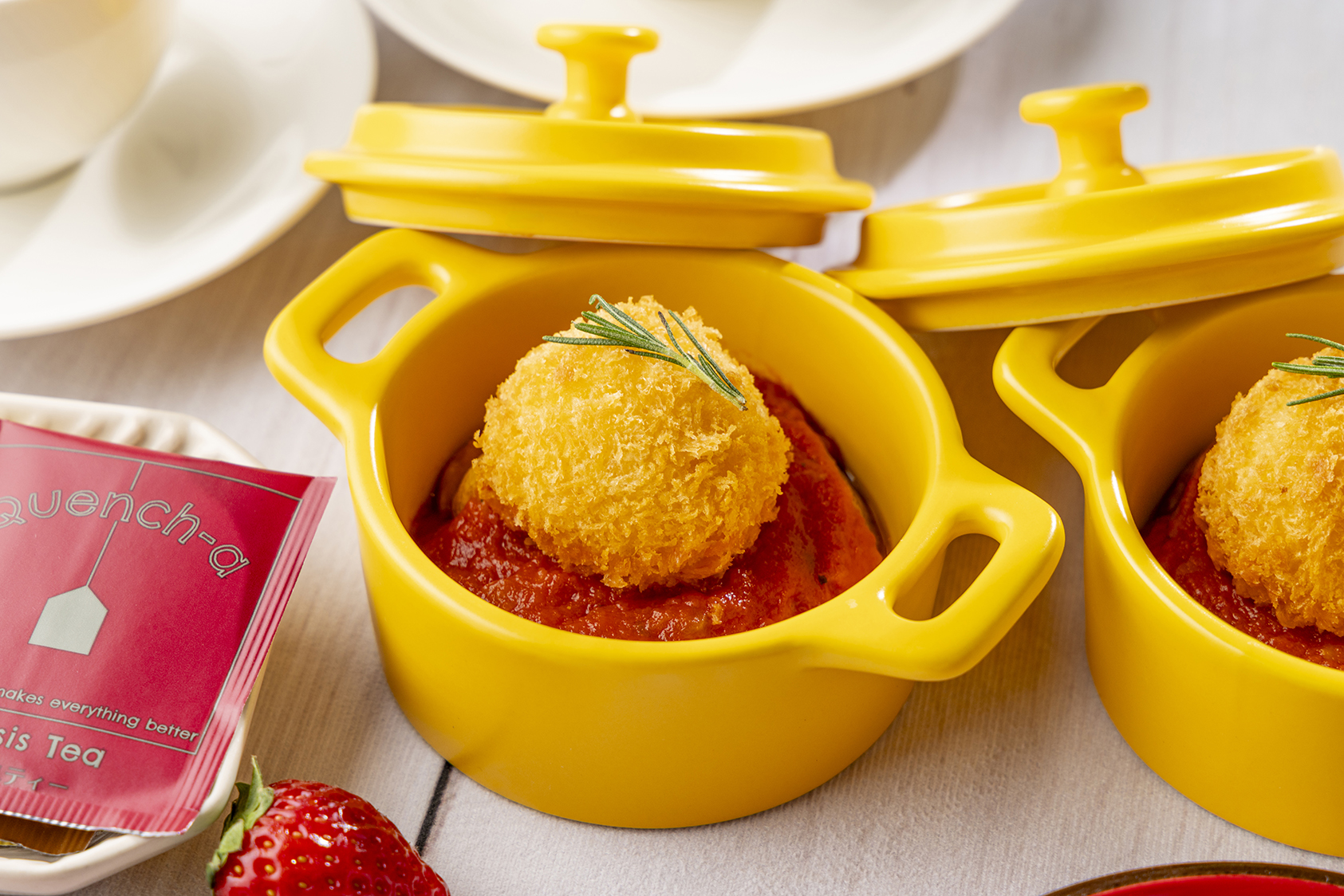 スイーツの合間に楽しむセイボリーとして、「ポルチーニ茸のアランチーニ(ライスコロッケ)」の芳醇な香りや、「モッツァレラチーズとカポナータ」の程よい酸味が味覚をリフレッシュさせ、最後まで軽やかな余韻が続きます♪